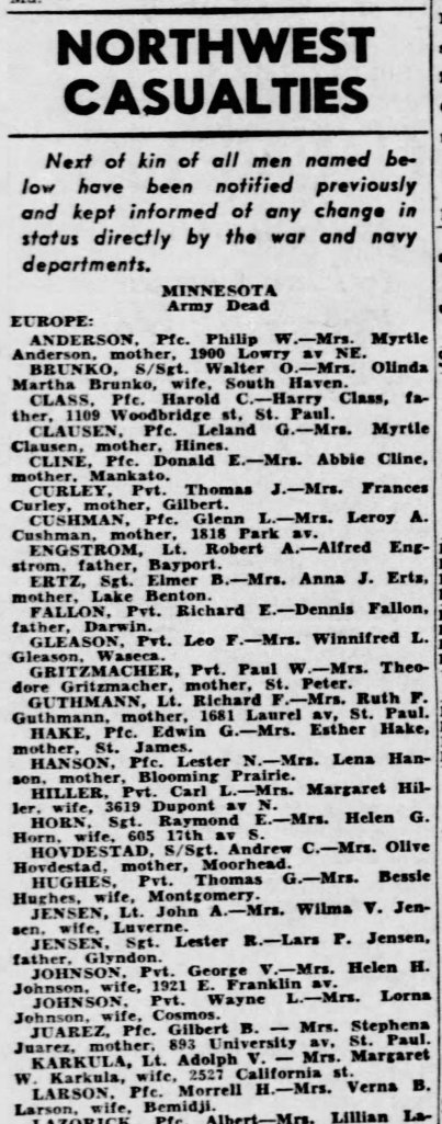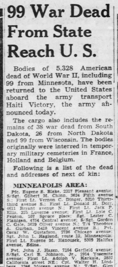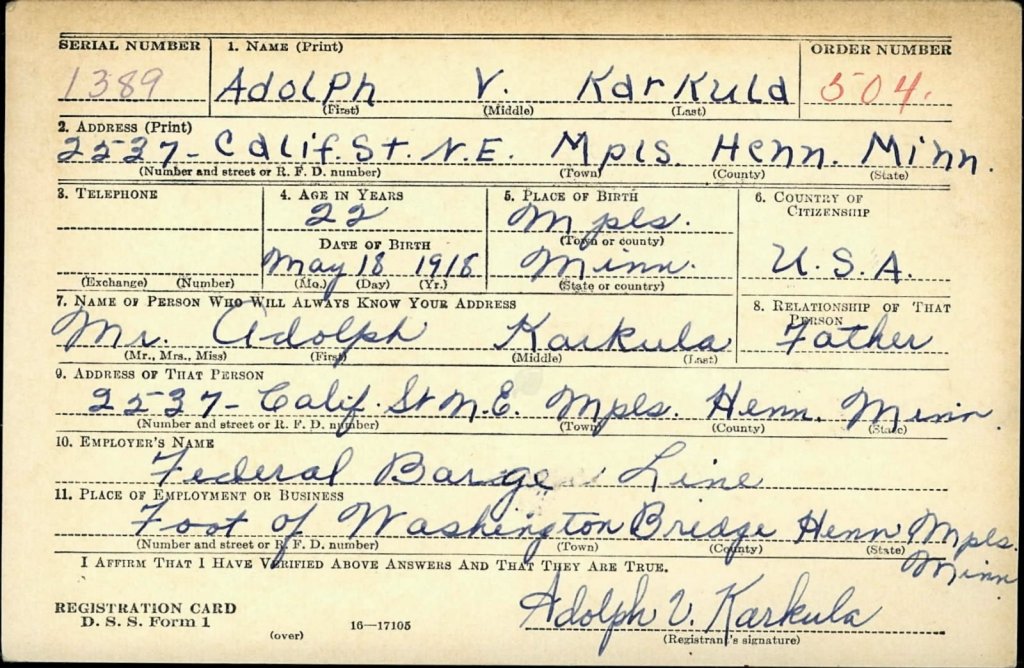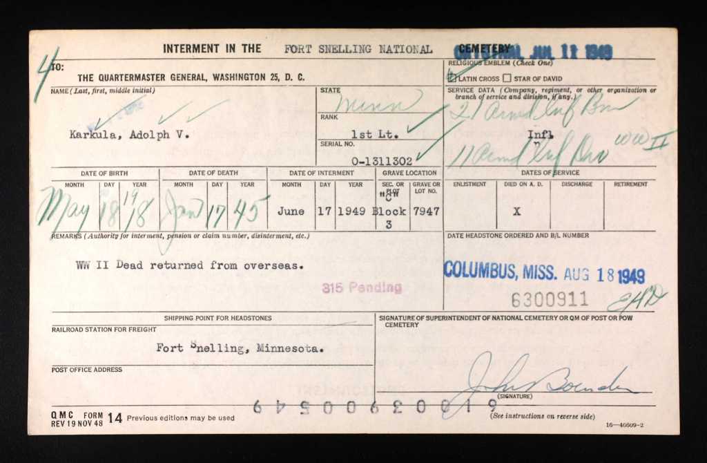 Adolph’s remains were returned to Minnesota for reburial in 1949. He is buried at Fort Snelling National Cemetery in Minneapolis, MN