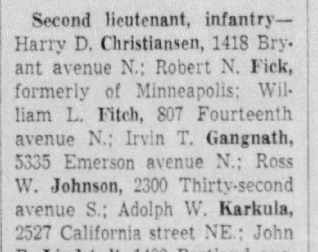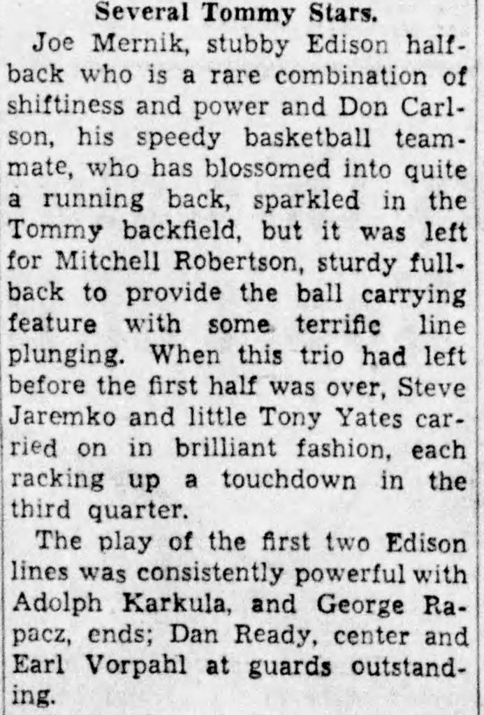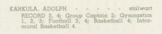 Adolph’s best sport was football. During his Senior year, he was mentioned by name in the Minneapolis newspapers 8 times between September and October. He was in contention for All-City honors, and he was a Letter winner.
