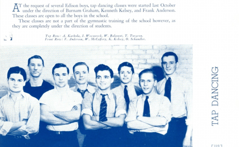 Adolph graduated with the Class of June 1937. He was involved in the school paper, and he was a Group Captain (student aide to Home Room advisor). He was very involved with athletics….including Tap Dancing!