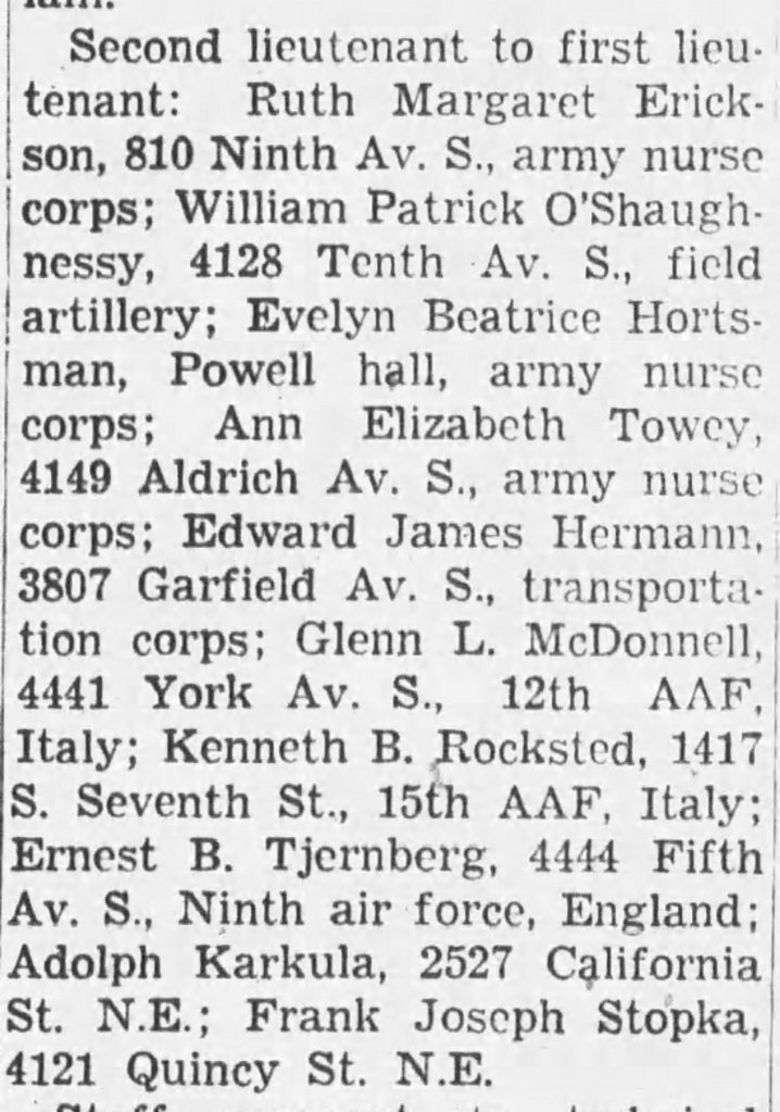 Adolph was promoted to 2nd Lieutenant in early 1943 and he was promoted again to 1st Lieutenant in early 1944.