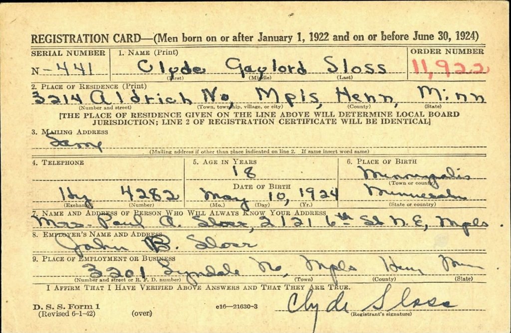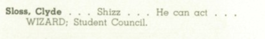 Clyde graduated with the June Class of 1942. While in school he participated yearbook and Student Council.