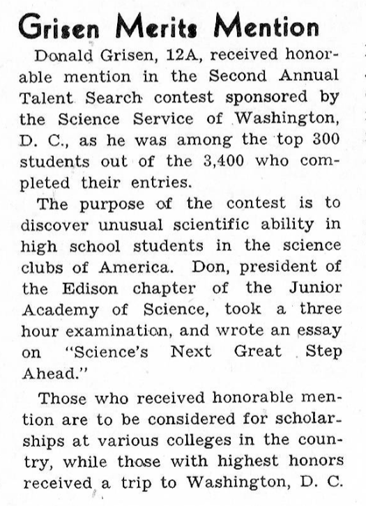 Donald graduated with the Class of June 1943. As can be seen by his yearbook entry, he was an excellent student, and active with numerous organizations and clubs at school. After high school he studied Chemical Engineering at the University of Minnesota.