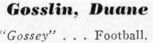 Duane graduated with the Class of January 1944. He was involved with choir, the Senior play, football, and wrestling. He was a letter winner in wrestling.