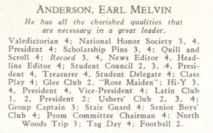 Earl graduated with the Class of February 1934. As can be seen by his yearbook entry, he was an excellent student, and active with numerous organizations and clubs at school. After high school he completed medical school at the University of Minnesota.