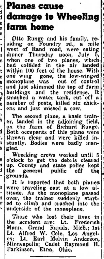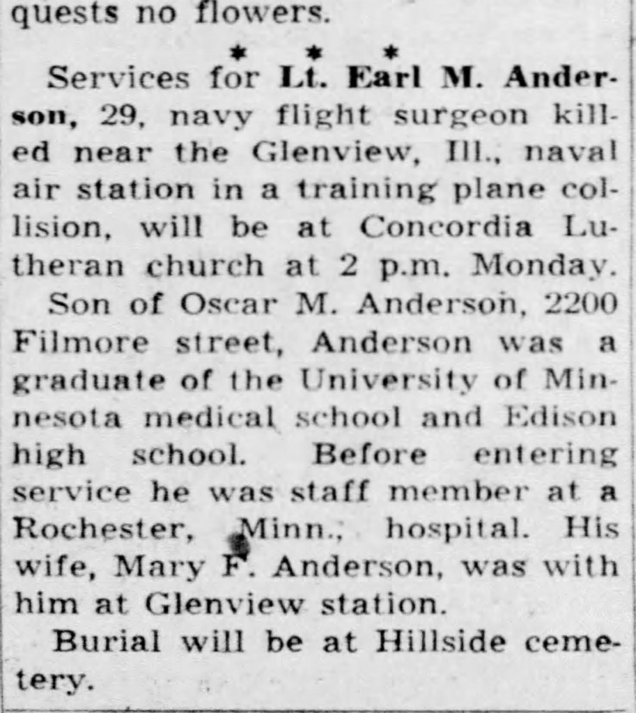 on 5Jul1945 Earl was involved in a midair collision near Wheeler, IL while flying out of Naval Air Station Glenview in Glenview, IL.