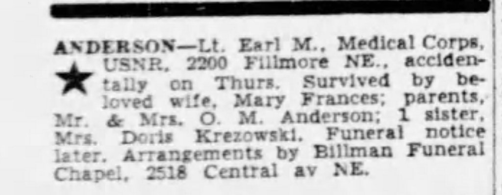 Earl’s body was returned to Minnesota, and he is buried at Hillside Cemetary in Minneapolis.