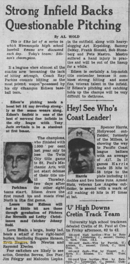 Edward graduated with the Class of June 1941. He played Varsity baseball for 2 years. He was one of the top pitchers his senior year.