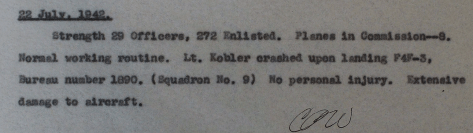 On 22Jul1942 George was uninjured after crash landing his plane.