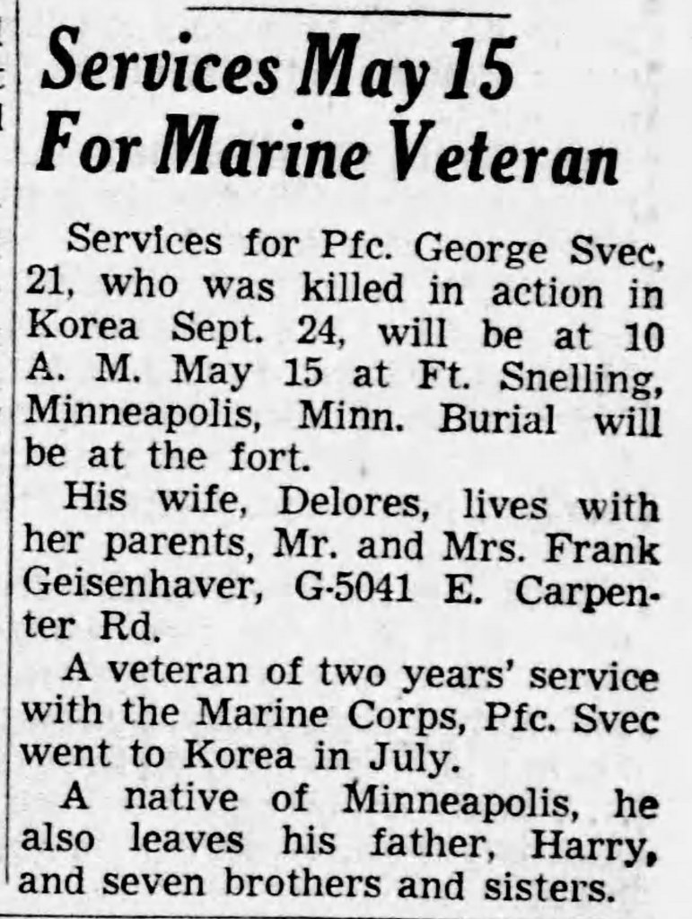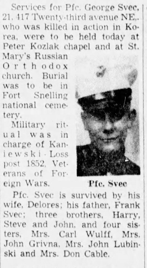 George was 1 of the 48 men killed in action that day when he was struck down by an enemy artillery shell. George’s remains were returned home to Minnesota for burial.