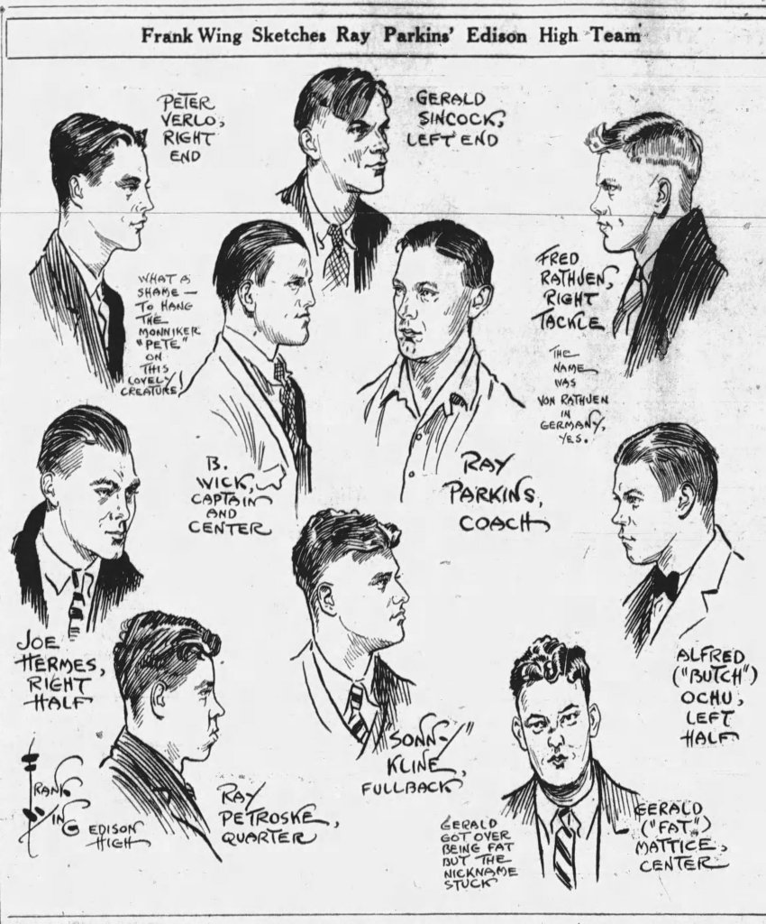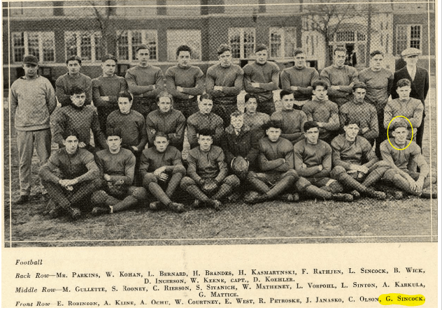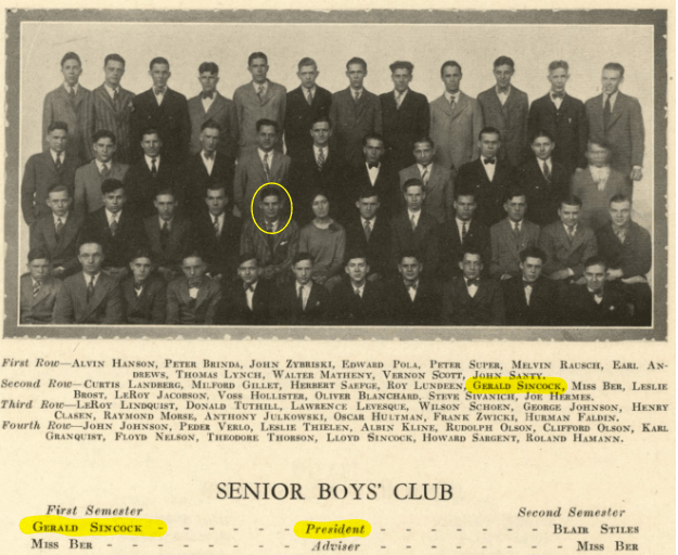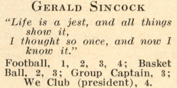 Gerald graduated with the Class of June 1928. He was a very good football player, and he was the President of the We (Senior Boys) Club.