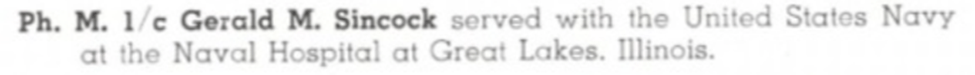 Gerald enlisted in the Navy in June 1942. After basic training and advanced training, he was stationed at the Great Lakes Navel Training Center in Chicago, IL.