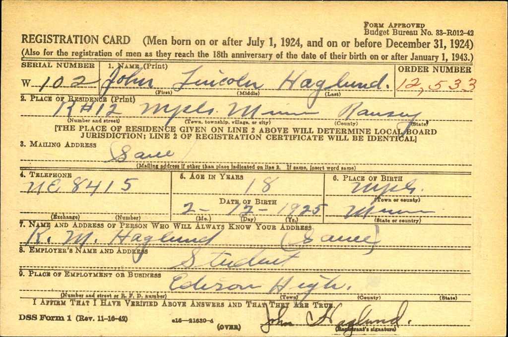John attended Edison from 1941 to 1943. It appears that he withdrew before graduating to join the Army Air Force.