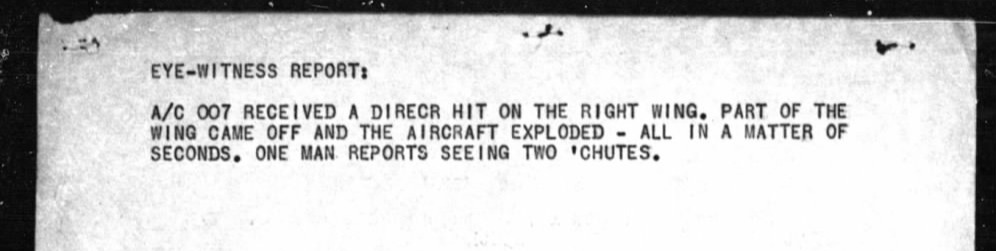 Several miles and 2 minutes out from the target, flying at over 25,000′ altitude, John’s plane took a direct hit from German Flak (anti-aircraft artillery). The flak hit the right wing of the plane causing part of the wing to separate. The plane exploded within seconds.