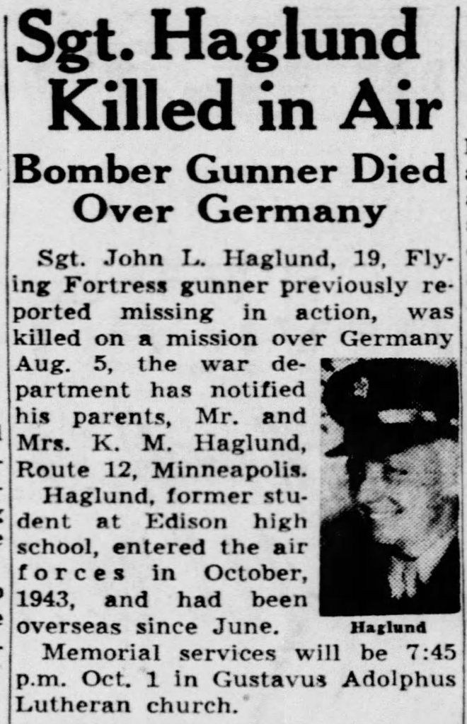 John’s 5th mission on August 5 was to bomb an aircraft engine factory near Magdeburg, Germany.