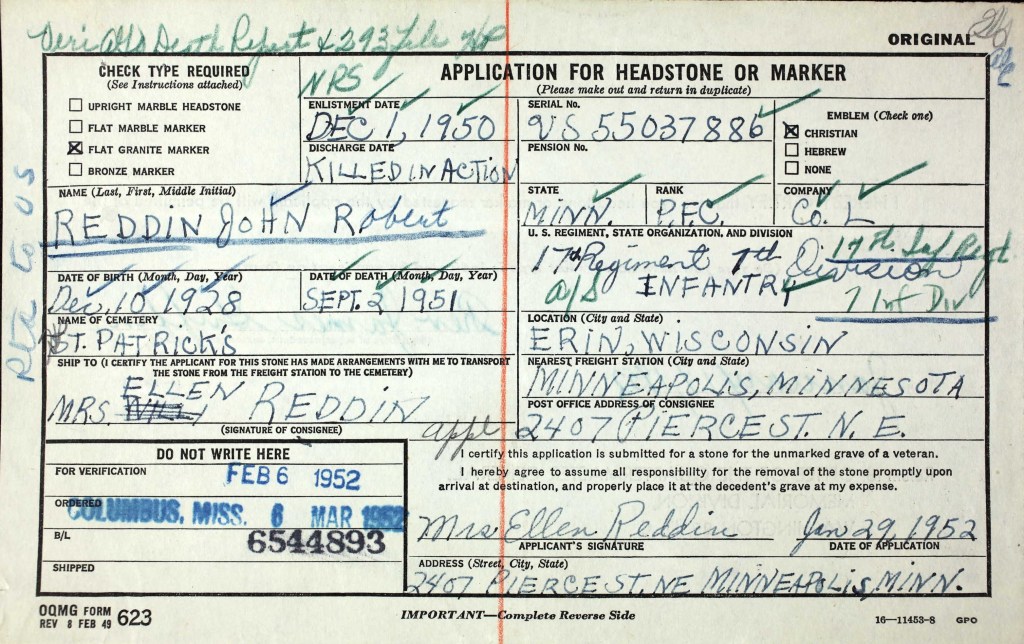 John’s body was return to the United States for burial at St. Patrick’s Cemetery in Erin Corner, Wisconsin.