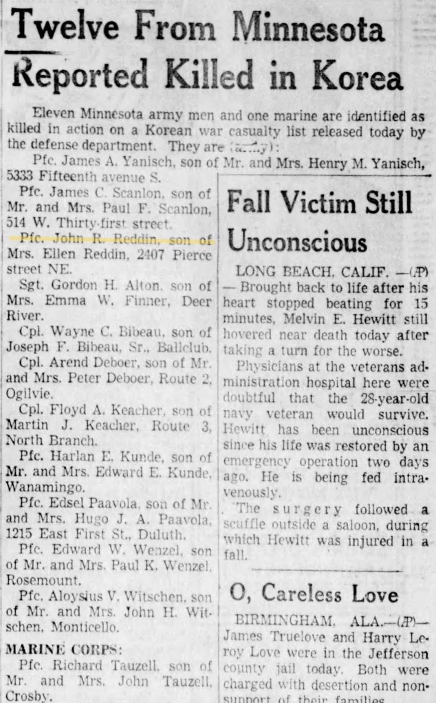 John was killed in action on 2Sep1951, 1 of 61 men to die in the battle.