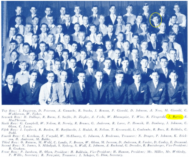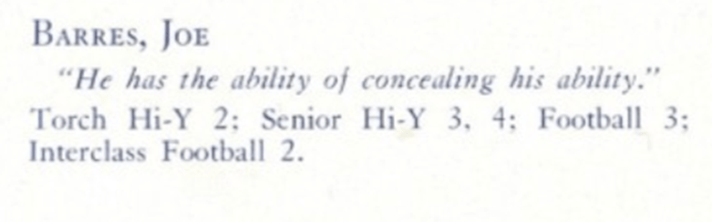 Joe graduated with the Class of June 1936. He was active in Torch, High-Y, and Football.