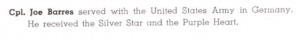 The 1946 Wizard yearbook entry for Joe credits him with being awarded a Silver Star Medal. No documentation of that award has been found to date. If true, it suggests that Joe served with the 743rd Tank Battalion from the D-Day landings in Normandy, until his death 9 months later.