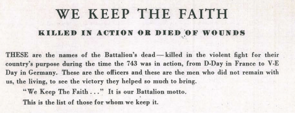 The 743rd Tank Battalion was in the first wave of landings at Omaha Beach on D-Day (as depicted in the opening scene of the movie Saving Private Ryan). It is unknown if Joe was with the unit at that time or not. A review of the units After Action Reports from 6Jun1944 to the date of Joe’s death was inconclusive as to when he joined.