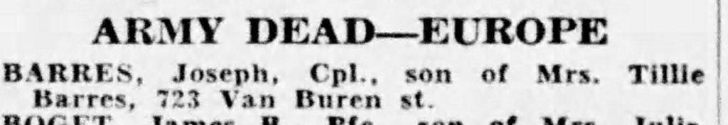 Due to the damage from the German shell and the fire that followed, Joe’s and Harold’s bodies were placed in a common casket and buried at a military cemetery in Margraten, Netherlands.