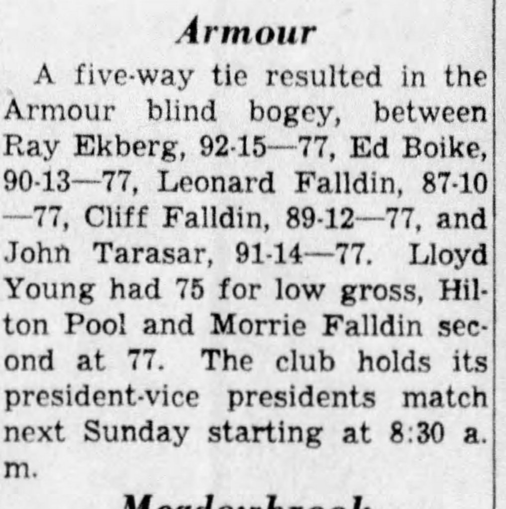 It doesn’t appear that he played golf for Edison, however he and his brothers were all golfers. The Falldin name appeared frequently in the local sport pages in the late 1930’s and early 1940’s.