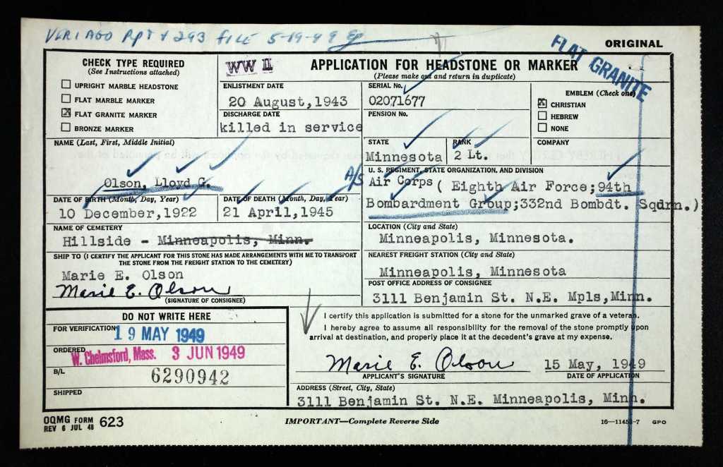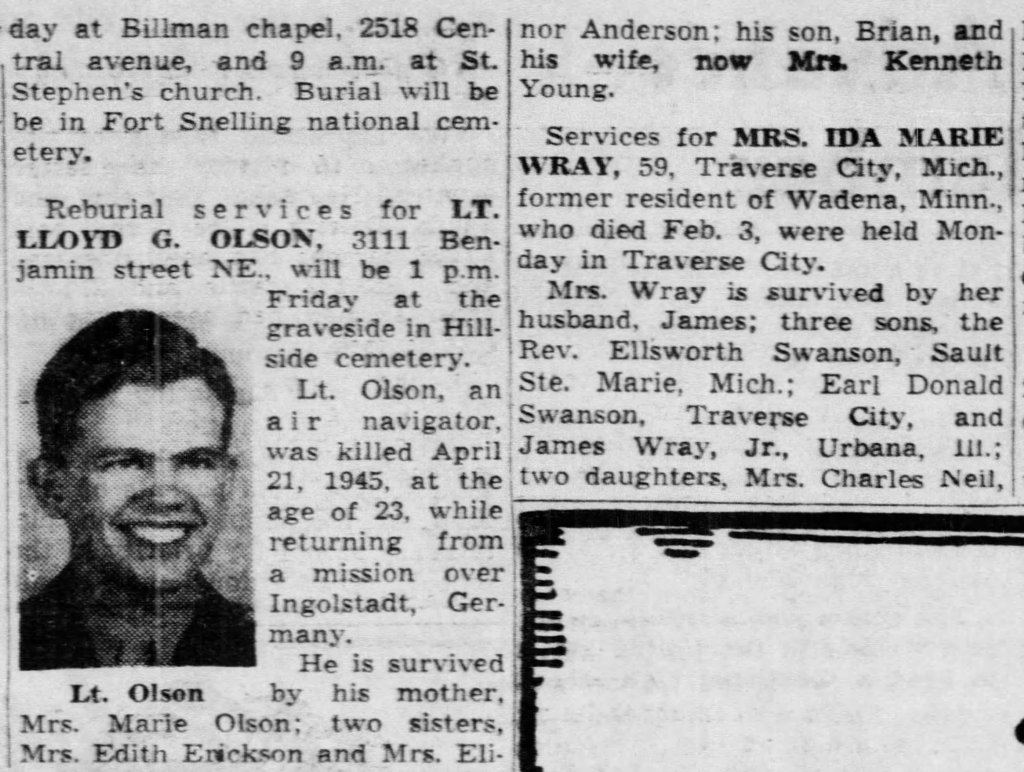 In 1949 Lloyd’s remains were returned to Minnesota for reburial.