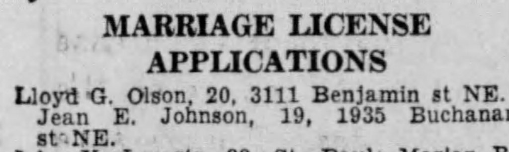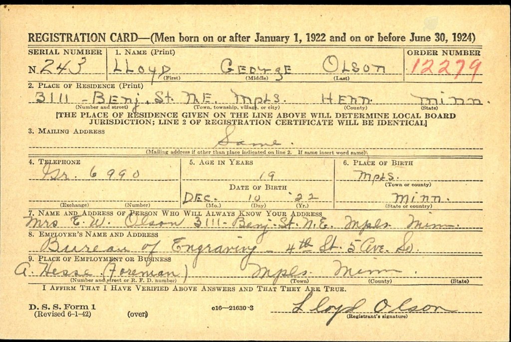 Following graduation, Lloyd worked for the Bureau of Engraving, Inc. in downtown Minneapolis. In May 1943, he married Jean Johnson – Edison Class of January 1942.