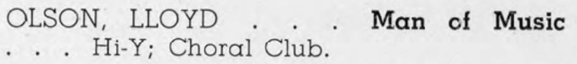 Lloyd graduated with the Class of January 1941. He was involved with Hi-Y and Choral Club.
