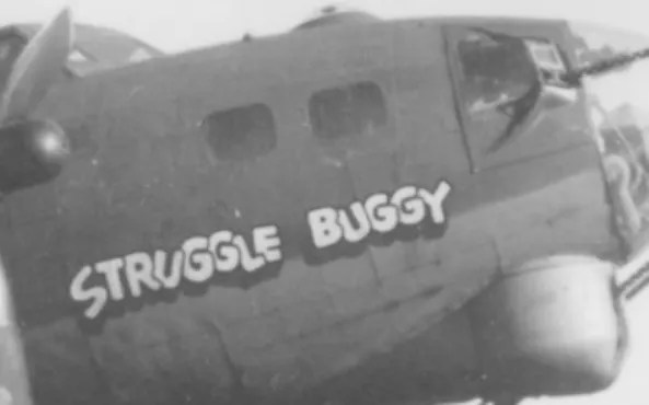 By April 1945 Lloyd was a Navigator-Bombardier on a B-17G bomber flying out of RAF Rougham Northeast of London. His plane was nicknamed “Struggle Buggy”.
