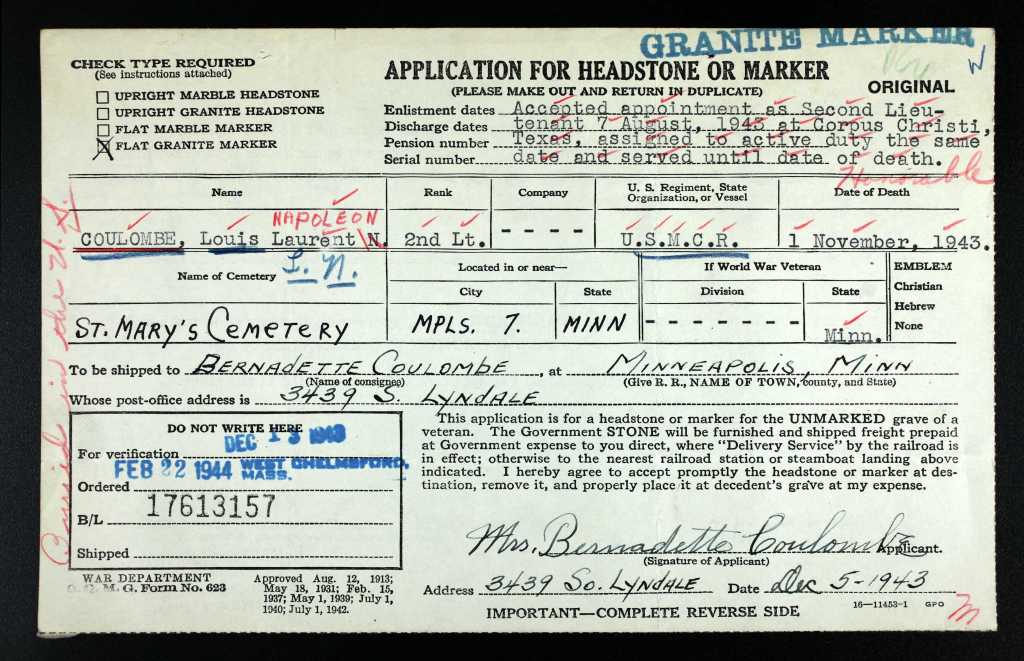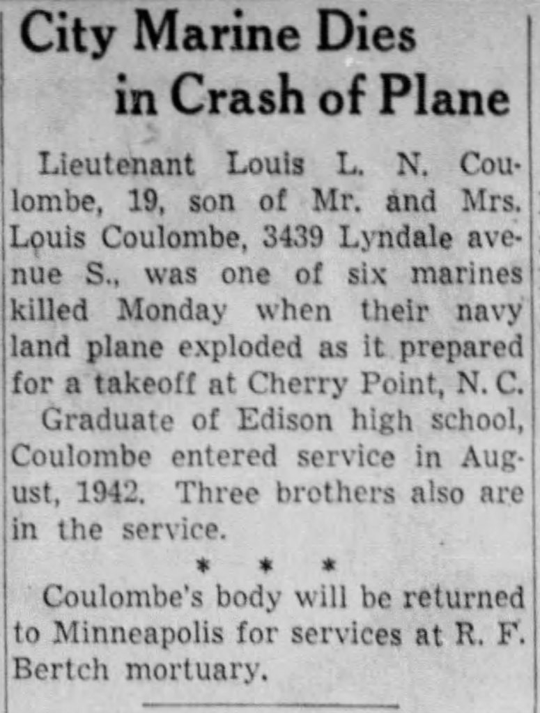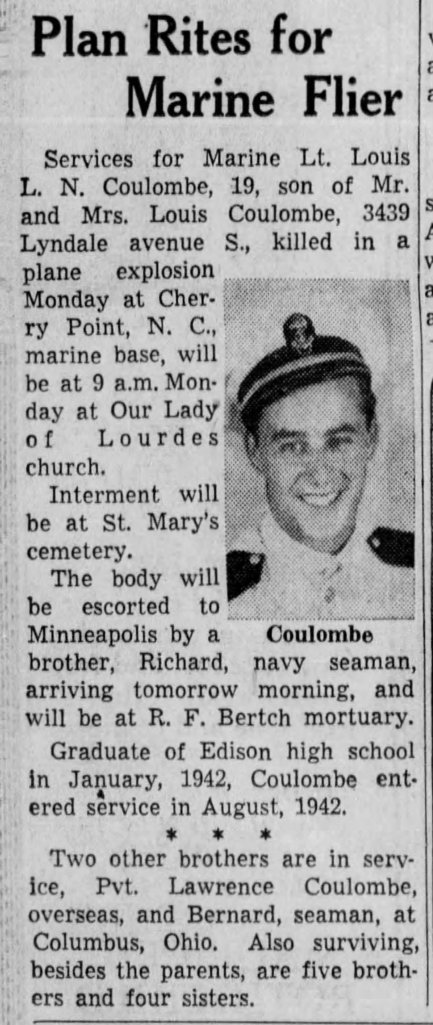 On 6Nov1943 Louis’ remains were escorted back to Minneapolis by his brother Richard, who was a Navy Seaman at the time.