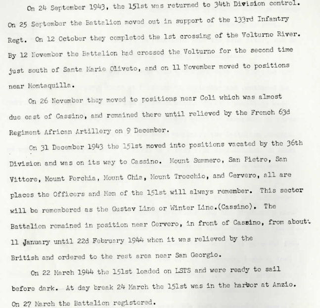 Unit: 151st Field Artillery Battalion – 34th Infantry Division