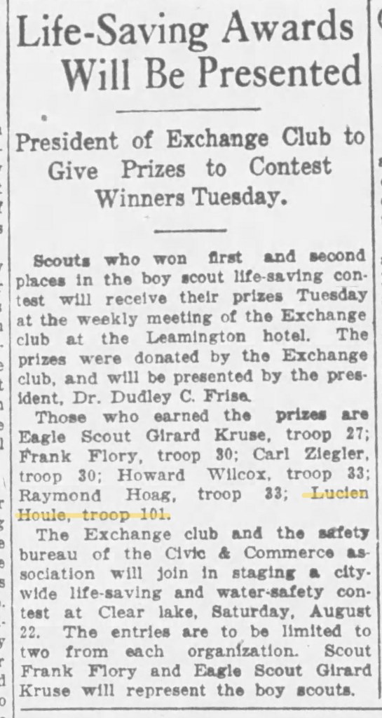 Scouting, Swim Team captain, advisory Group Captain, may have foreshadowed Lucien’s eventual military career.