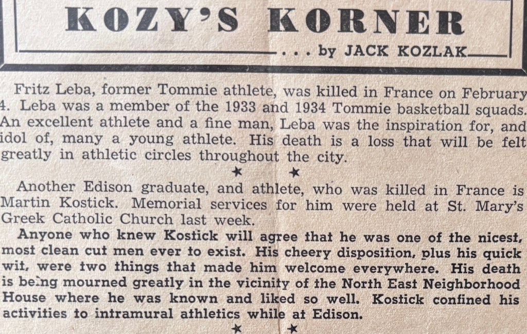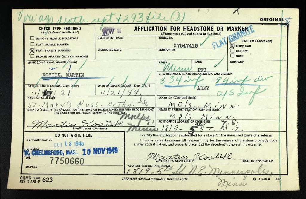 Thank you to the family of Martin Kostik for sharing family photographs, mementos, and personal recollections of his life.