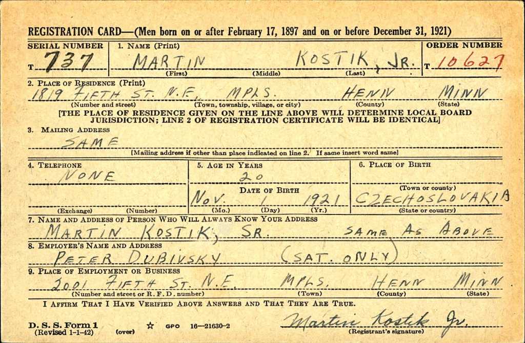 Martin was born in Czechoslovakia. He immigrated to America with his mother in 1927 to join his father who was already here.