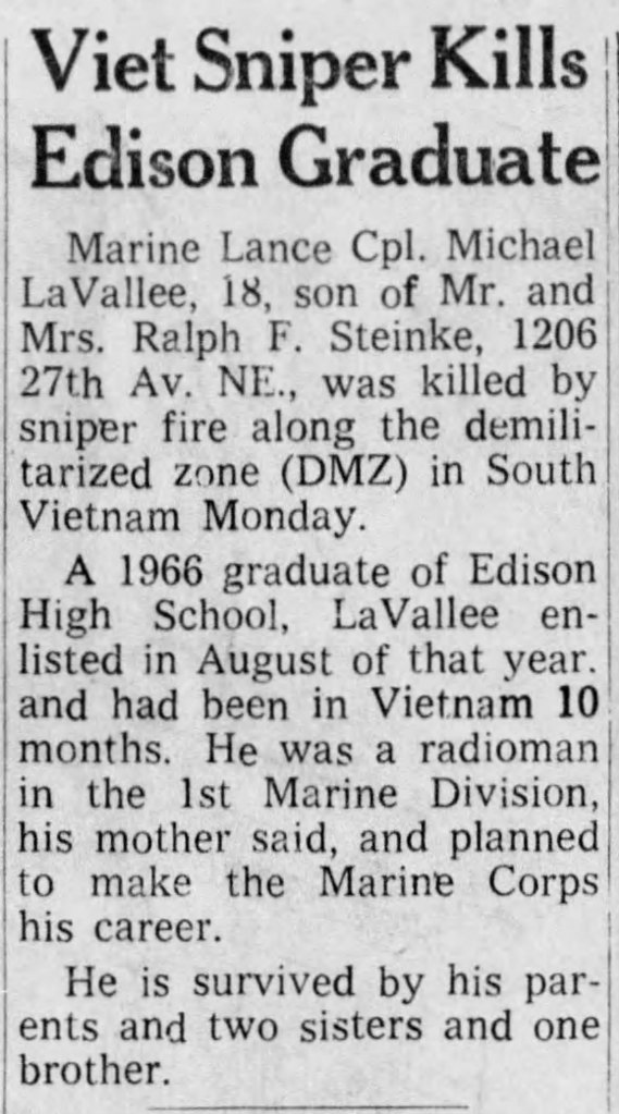 Michael’s body was returned to Minnesota for burial at Fort Snelling National Cemetery in Minneapolis, Minnesota.