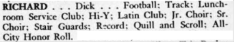 Richard graduated with the Class of 1954. He was active in sports and clubs, and he was strong academically.