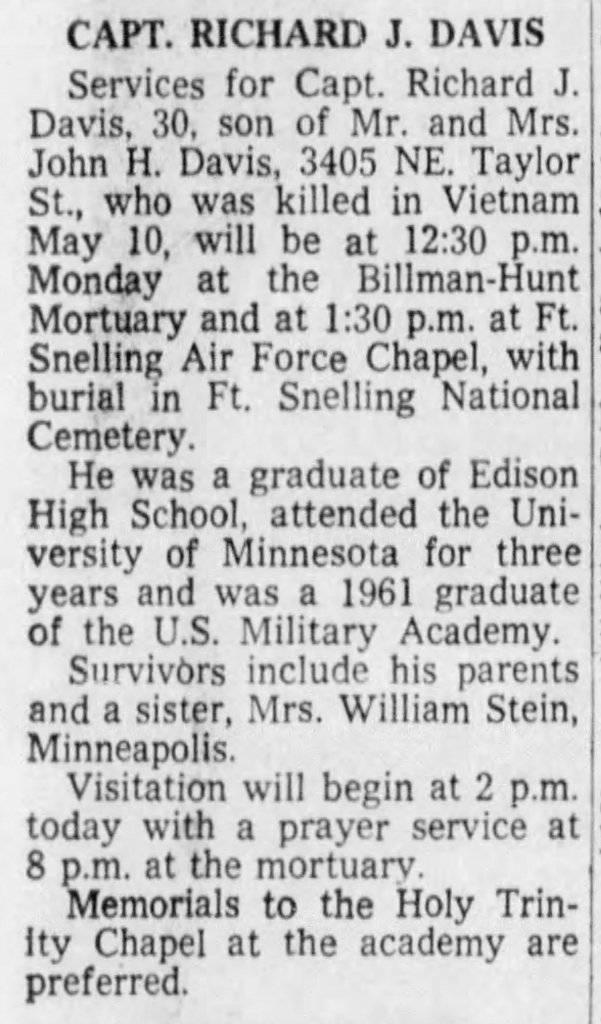 Richard is buried at Fort Snelling National Cemetery in Minneapolis, MN.