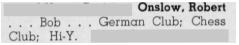 Robert graduated with the Class of June 1948. He participated in the German Club, Chess Club, and Hi-Y. He was also a Boy Scout.