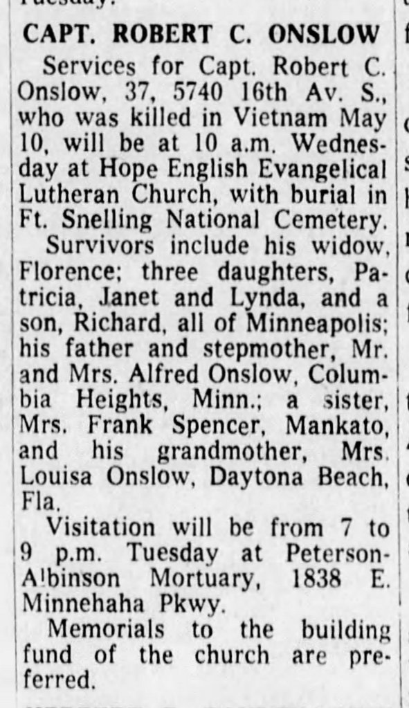 Robert is buried at Fort Snelling National Cemetery in Minneapolis, MN.