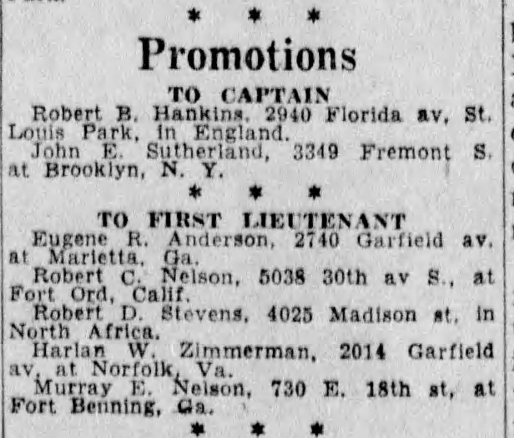 Robert earned his commission as a 2nd Lieutenant on 14Nov1942, and went overseas a month later.