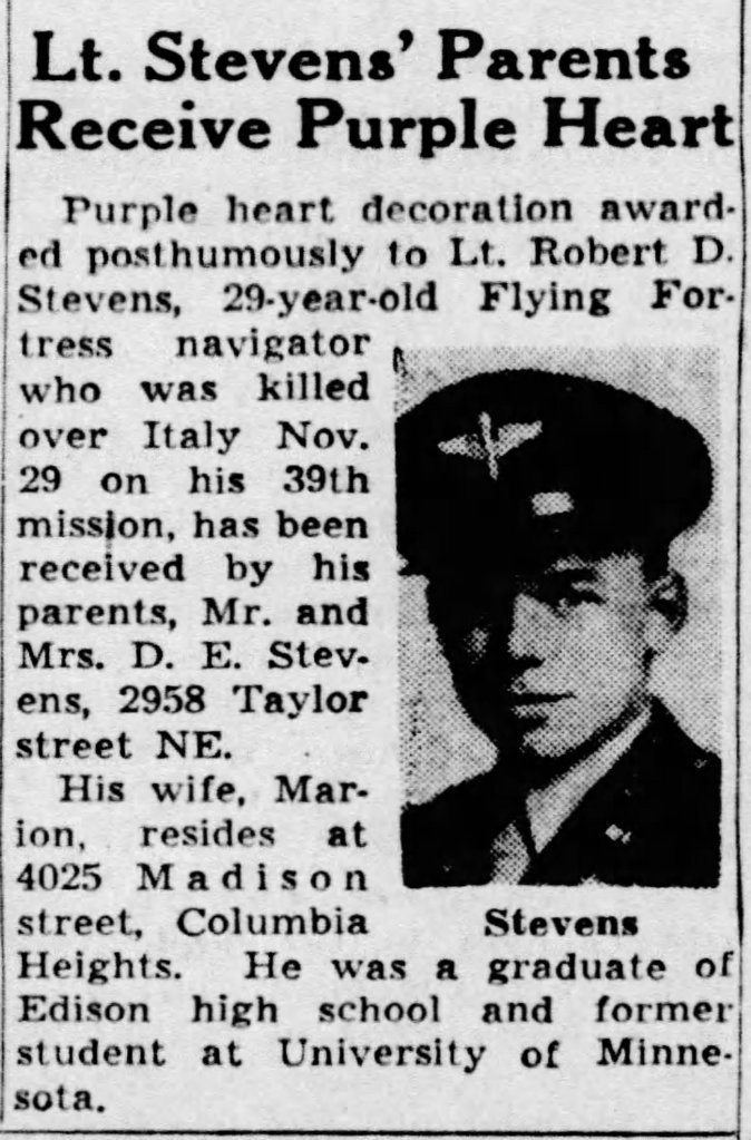 Robert’s body was never recovered. His name, along with the names of 3,094 other missing US service members from the Italian campaigns, is inscribed on the wall of the chapel at the Rome-Sicily American Cemetery and Memorial in Nettuno, Italy.
