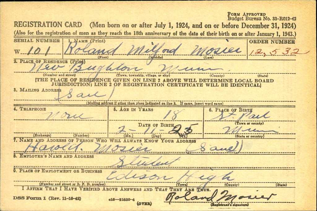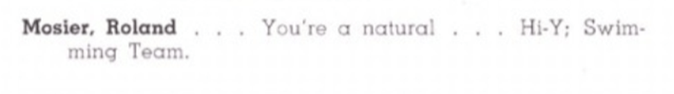Roland graduated in the June Class of 1943. While at Edison he participated in Hi-Y and swimming. He was a 4-year letter winner in Swimming,
