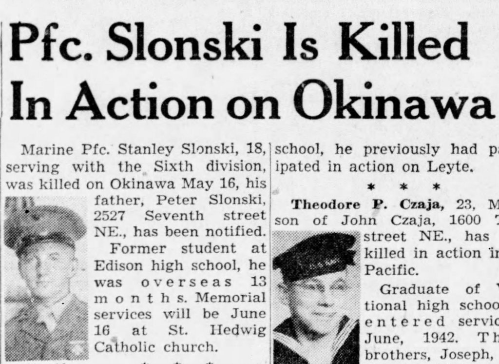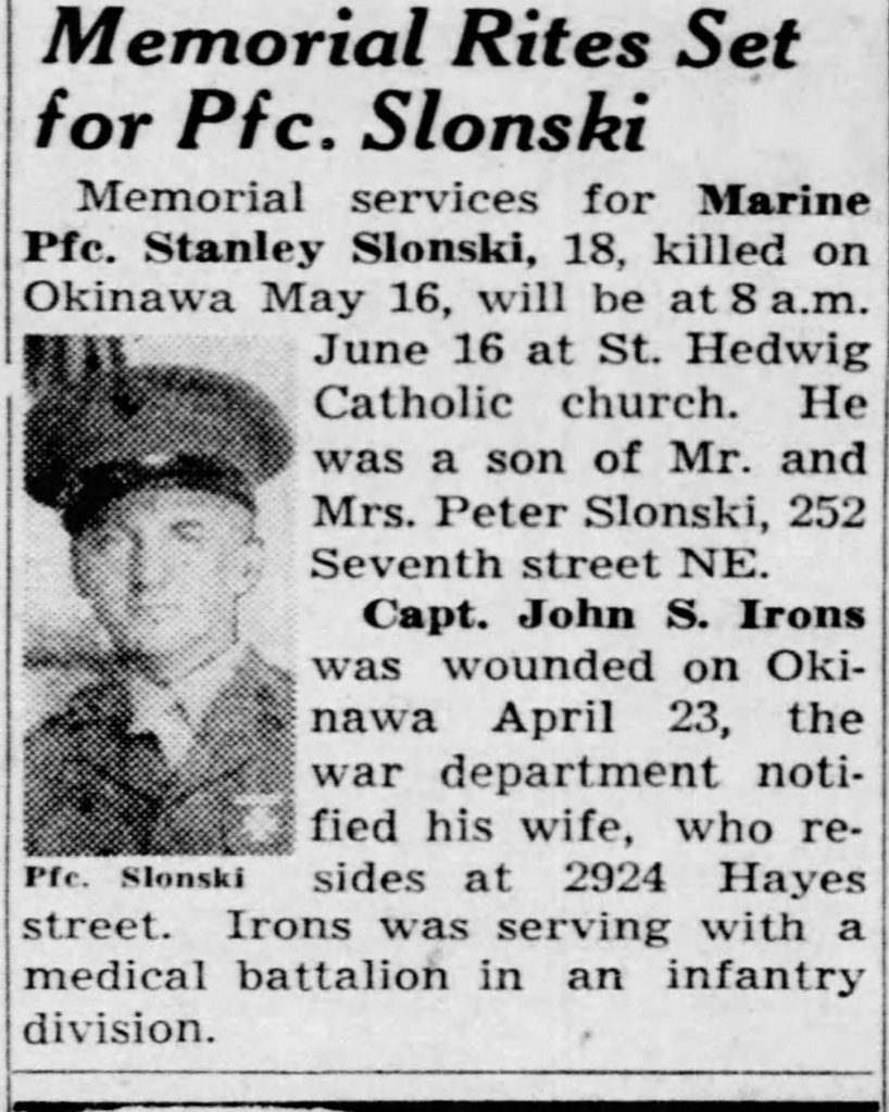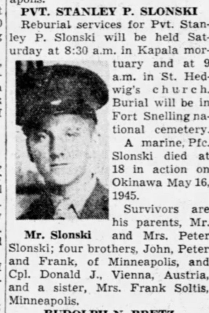 Episode 9 of the HBO series The Pacific is about the Battle of Okinawa and may provide some insight into Stanley’s experiences as a Marine fighting on Okinawa.