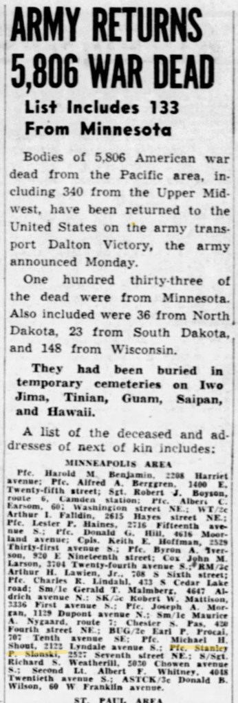 In 1949 Stanleys remains were returned to Minnesota for reburial.