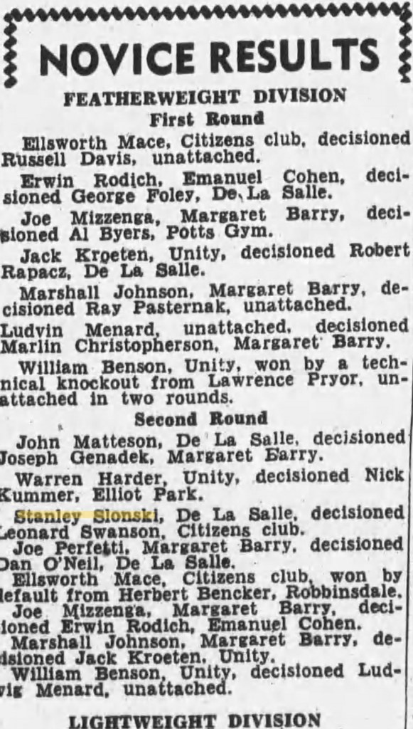 Stanley’s name appeared several times in the Sports section of the Minneapolis paper when he participated in amateur boxing matched.