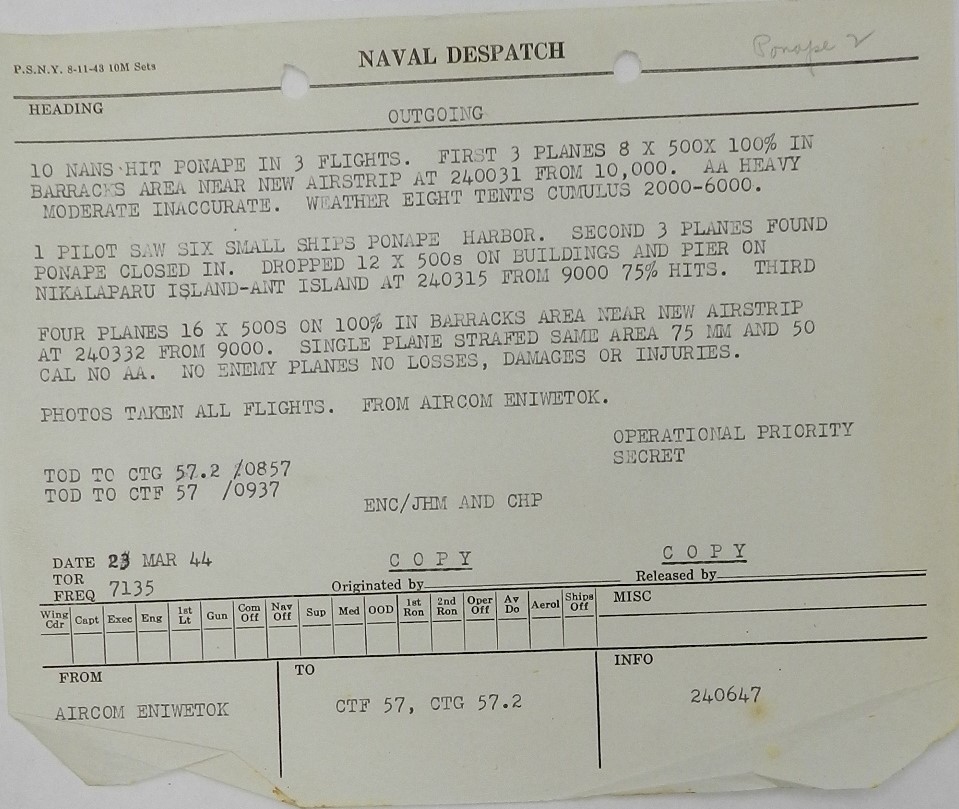 They returned to Ponape Island again on 23Mar1944.