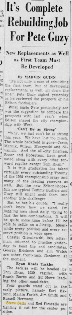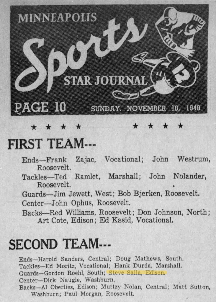 At the end of the 1940 season Steve was selected as a Second Team All City Guard.