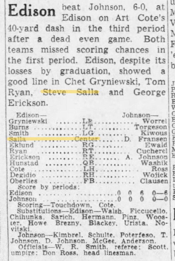 During his Senior year of Football, Steve made the local sports page several times