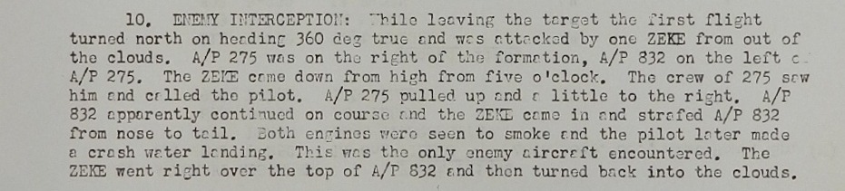 Leaving the target, Steve’s plane was attacked from above by a Japanese “Zeke” fighter plane.