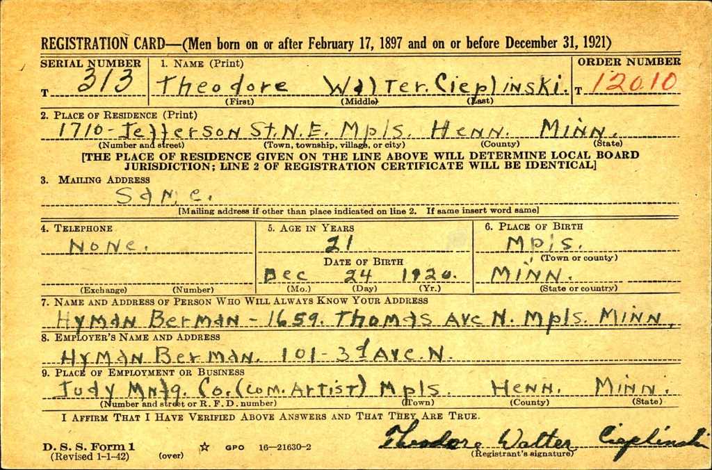 Ted is buried at Fort Snelling National Cemetery in Minneapolis, MN.